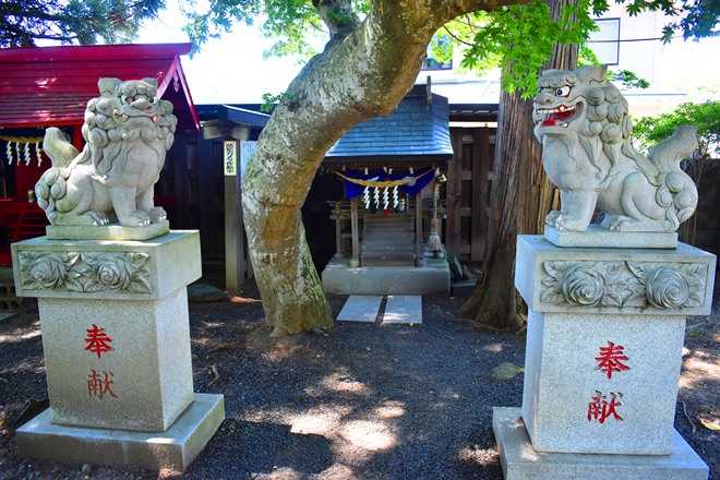 向って左側にお稲荷様を祀る祠、向って右側に座敷わらし「亀麿」を祀る祠。