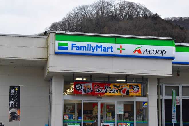 初めて見た、コラボ、ファミマとAコープ、中に入るとファミマがちとスーパーマルケット化。
