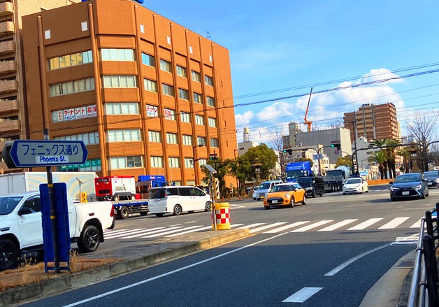フェニックス通り。日本の道百選。中央分離帯に亜熱帯植物フェニックス125本。
