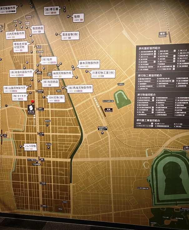 堺の刃物屋さんマップ。仁徳天皇陵も近い。