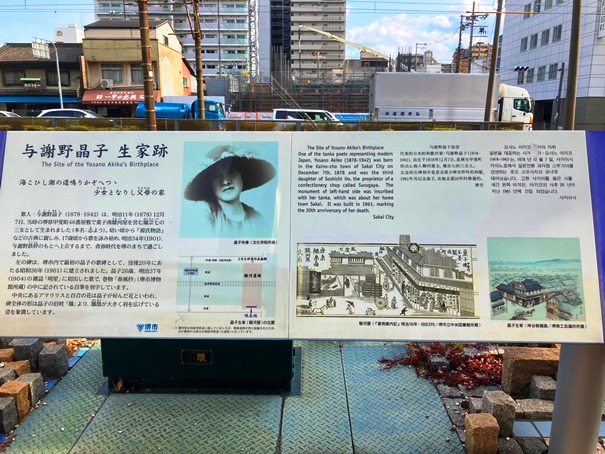与謝野晶子発祥の地。和菓子商「駿河屋」の三女。鉄幹に出会うまで堺で生きる。