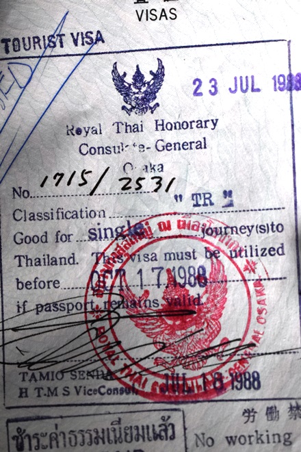 1988年タイは確かノービザは1か月までだったような気がする。タイ縦断自転車旅行2ヶ月だったので、大阪領事館でビザ取った。