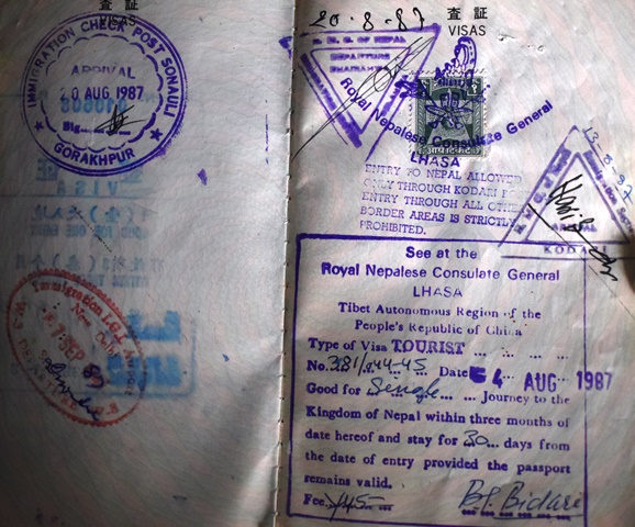 チベットのネパール領事館でネパールのビザ取得。印紙か。チベットネパールの国境はコダリやったな。