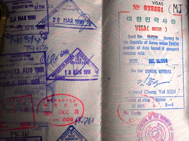 1990年前半は韓国はビザが必要だった。韓国領事館は神戸にあった。1980年代にも韓国行ったが、24時間トランジットはビザ不要だったし、5泊した時は、1986年アジアンゲームで1か月間だけ2週間ノービザになった。(ブラジルもビザが必要だが、1996年リオオリンピックの間はビザ不要になったので、すかさず、ブラジル行ったなあ)