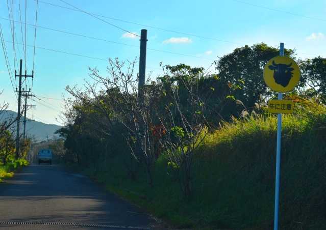 島独特の牛注意の標識。