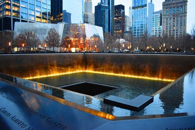 911メモリアル&ミュージアム。特徴的なカーテンウォールの残骸が見える。まさか、911の謎、陰謀論を否定する説明とかあるんだろうか。