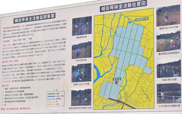 椨川新田の棚田までの細い道は柵に囲まれていたが、何か動物から守るためか。