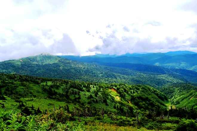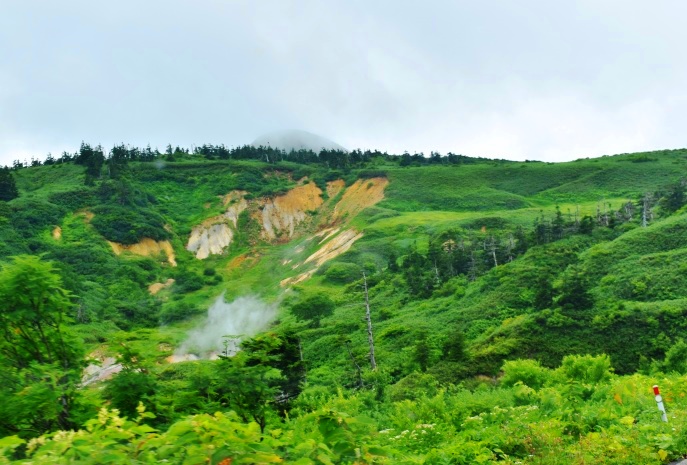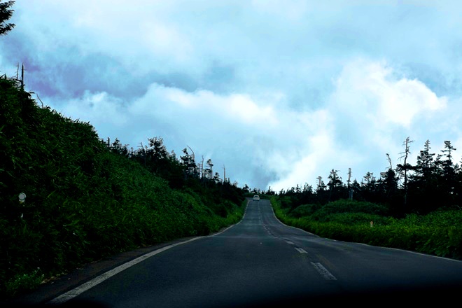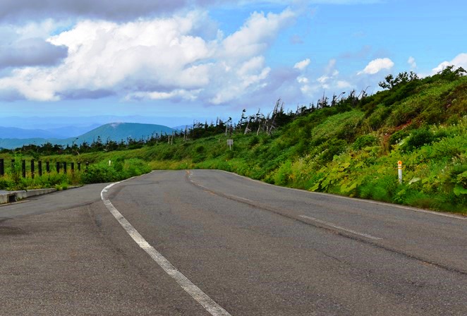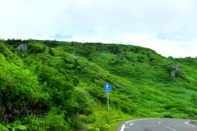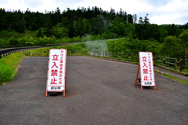 見返り峠を越えて、源太岩展望所越えて、松尾鉱山廃墟群跡を越える。秋田県から岩手県に入る。