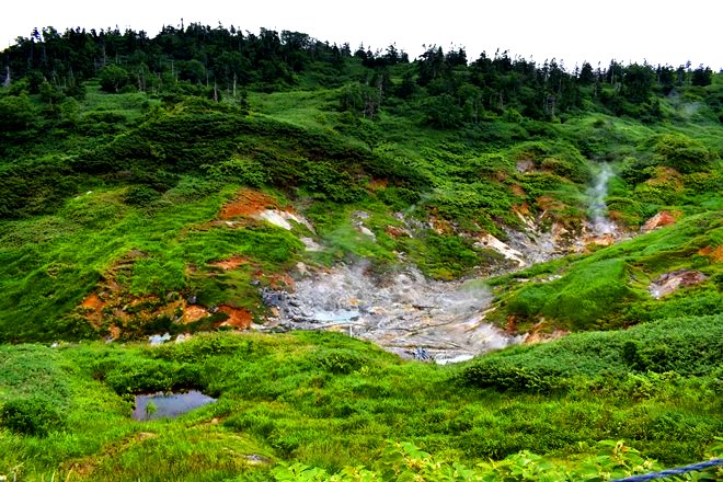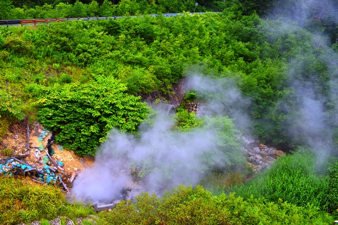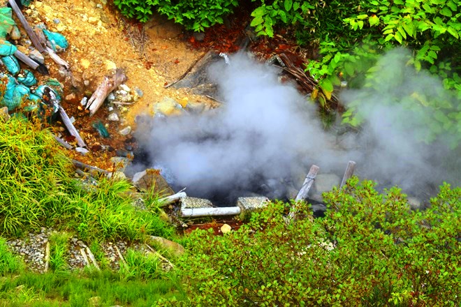 高温の熱泉と蒸気がポコポコと音を立てて噴出。