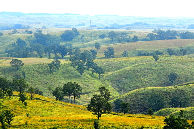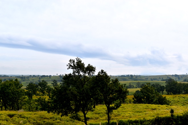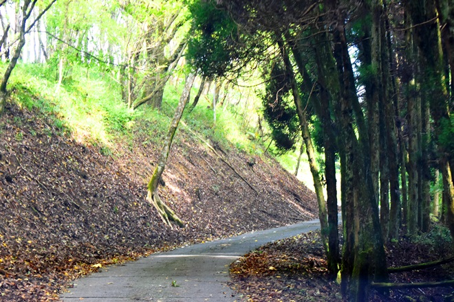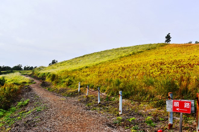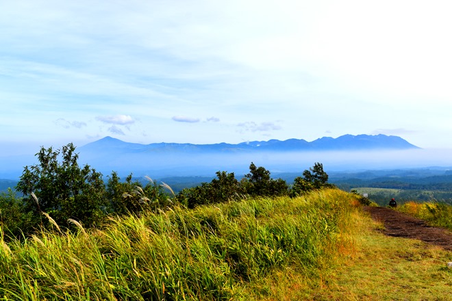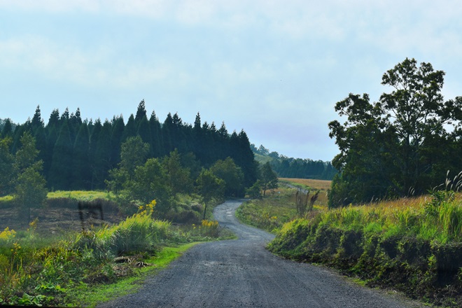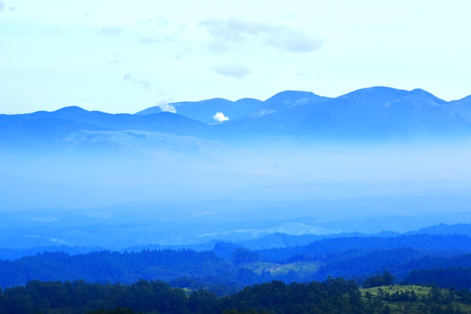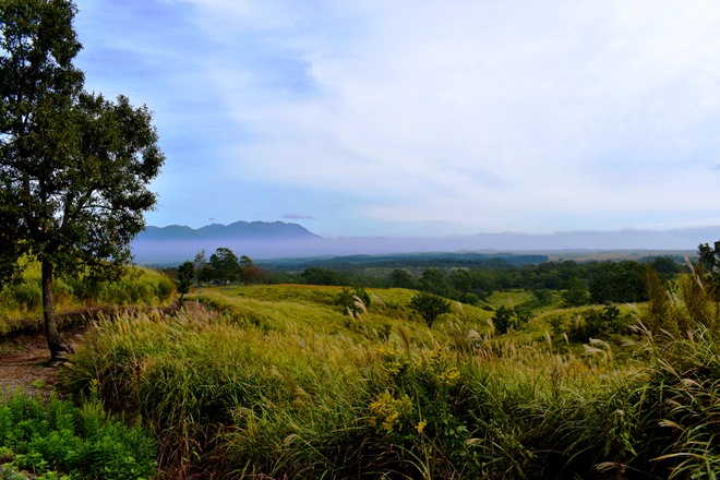 厚く堆積した火砕流は、長い年月を経て侵食が進み、なだらかな波打つ台地をつくり上げとる。