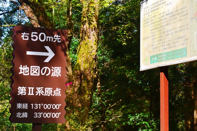 九州の大部分を含む座標系(平面直角座標系第Ⅱ系)の中心(東経131度00分00秒、北緯33度00分00秒)