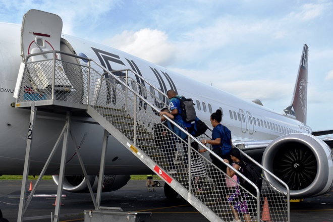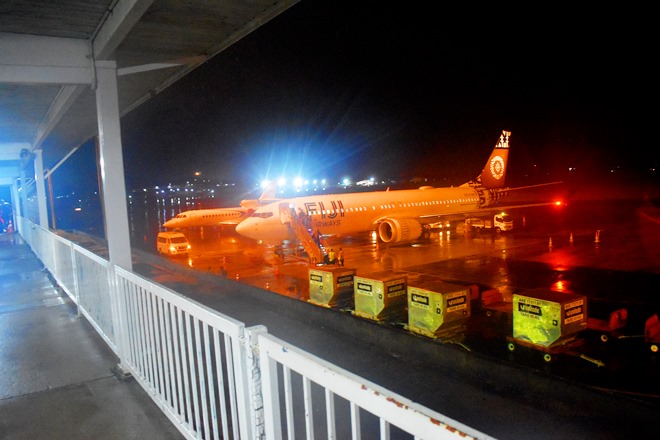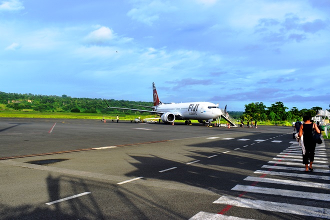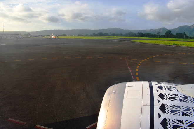 急に、フィジーとの案内があり、え、飛行機来てないのに?あ、奥の方に来ていた。歩いていく。