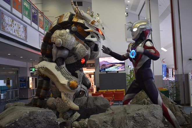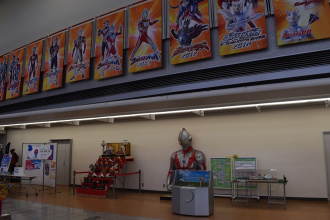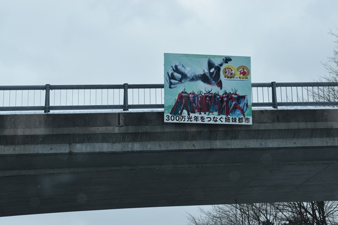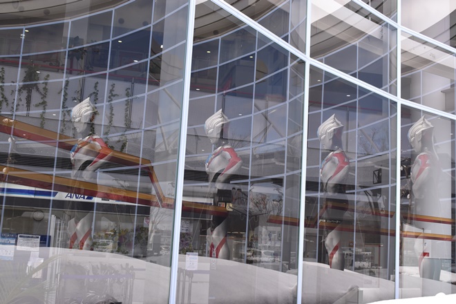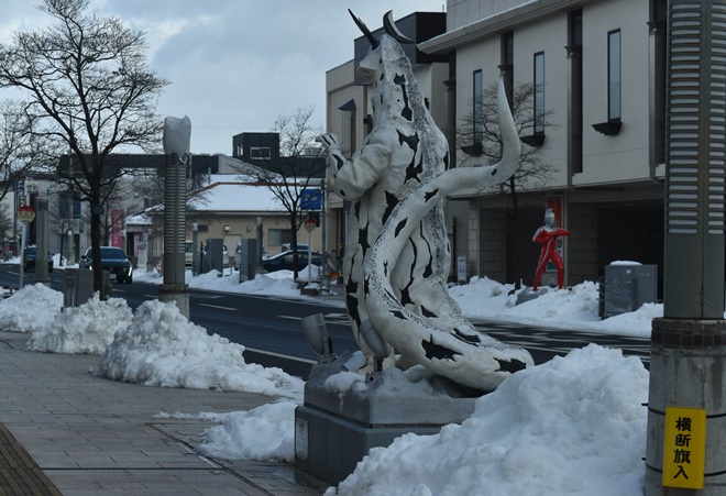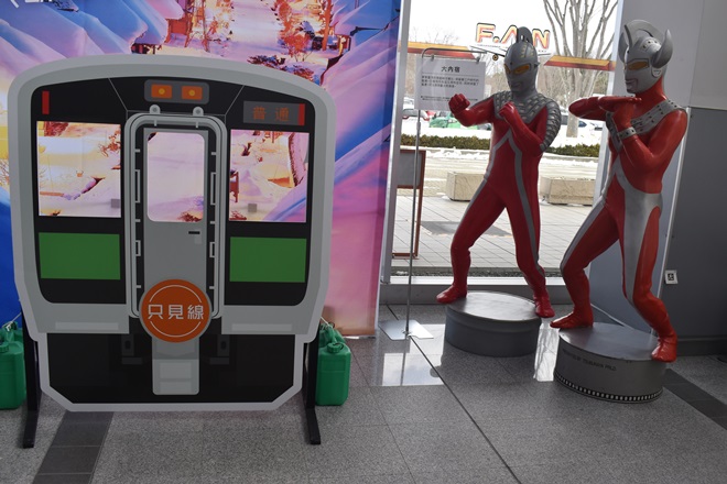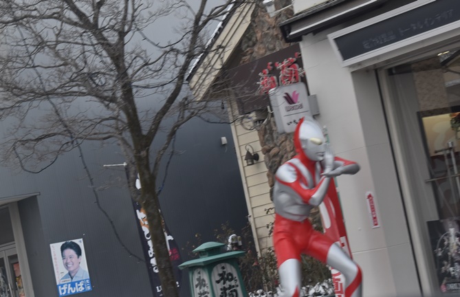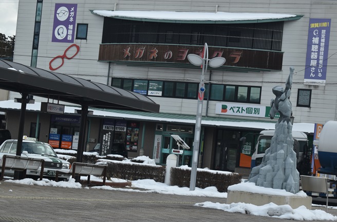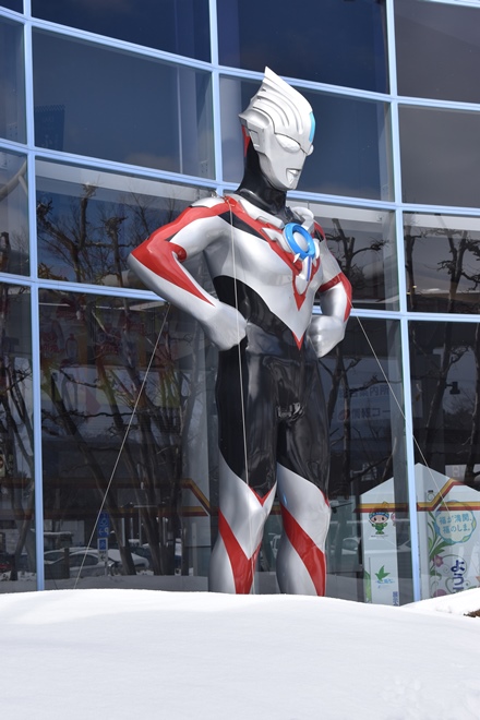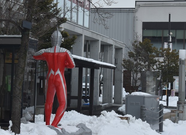 ウルトラマン須賀川駅。まえに見たとき、溶けるウルトラマンに見えたが、岩盤支持層に支えられているじゃん。そのうち、岩盤支持層ごそっと消えちゃうぞ。
