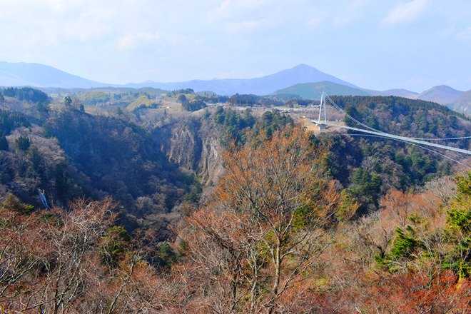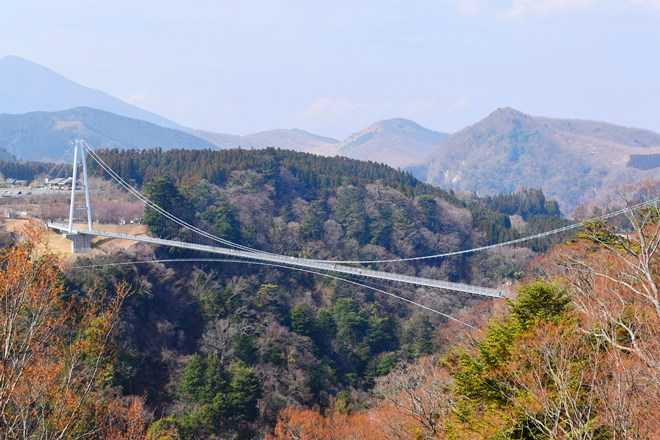 九酔渓の鳴子川渓谷の標高777メートルに架かる九重“夢”大吊橋。