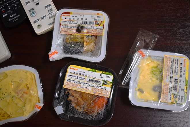 夕食は、私たちのセコマで購入。小口で安く買えるのが嬉しいわい。塩さば、肉じゃが、茶碗蒸し、カルボナーラ。