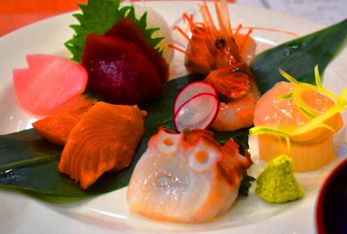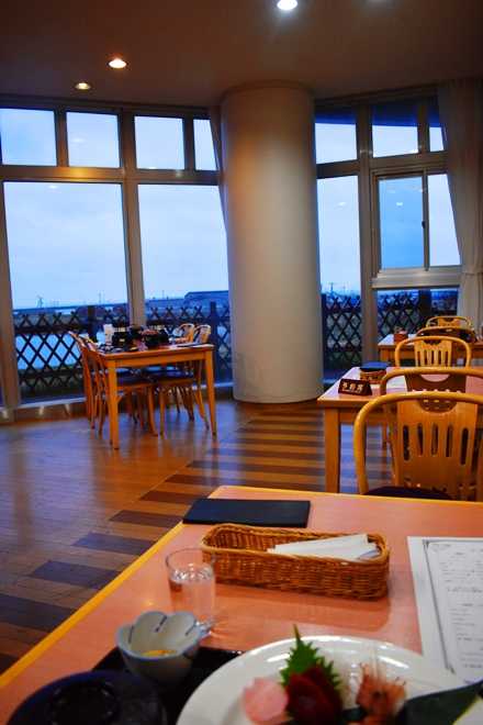 夕食。刺身定食を鏡沼の前にある宿泊先「てしお温泉夕映」で食す。