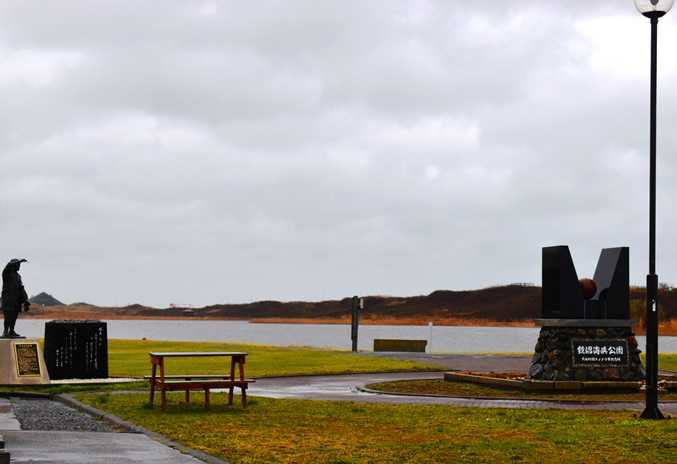 天塩川。不思議なことに河口まで来て砂嘴となり、急に曲がりなかなか海に出ない。海岸沿いを約10キロ南流し、天塩町の中心部付近で日本海へ注ぐ。