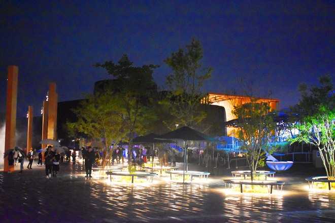 EXPOホール、シャインハット、プロジェクションマッピング。