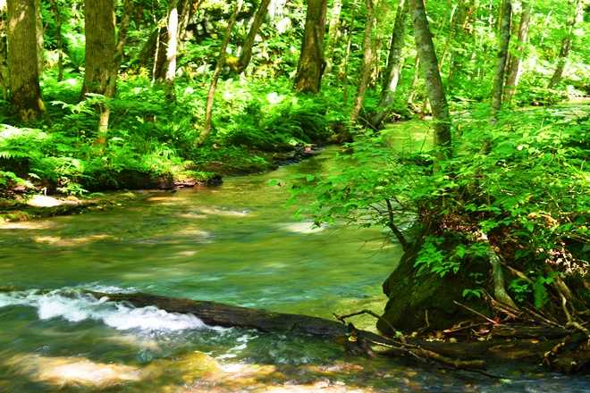 標高は上流側で約400メートル、下流側で約200メートル。しかし、高度差をほとんど感じない勾配だ。