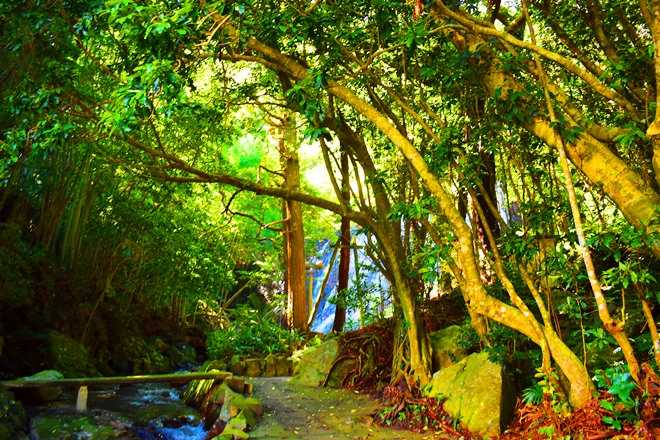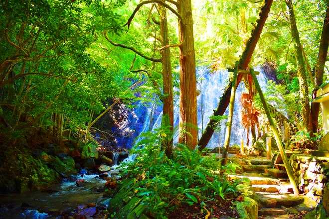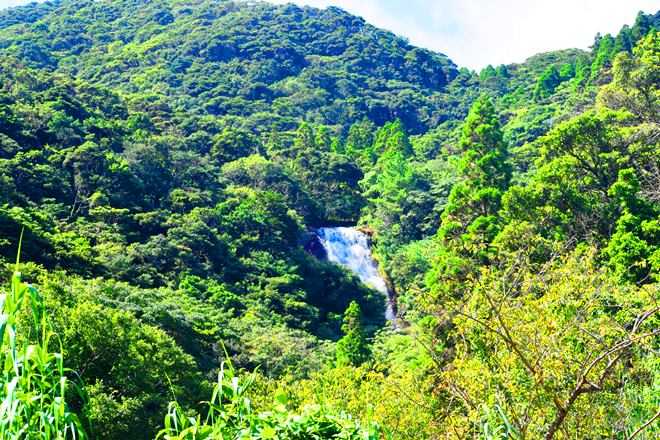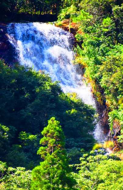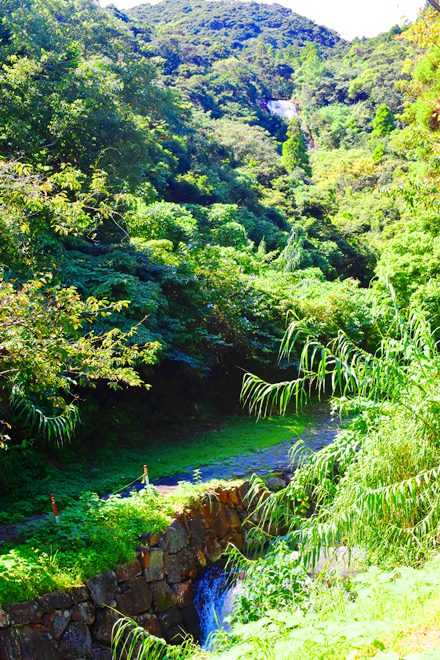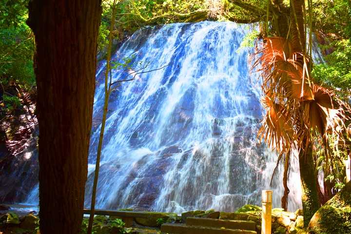 55メートルの高さから滝壺ができており、三段になって落ちている。三段目だけ見ている。