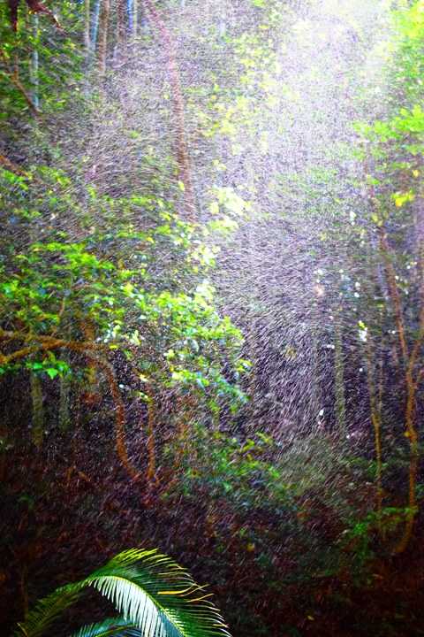 滝から離れていても飛沫が漂っていた。光の関係でよく見えただけかも知れない。