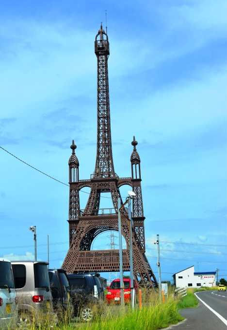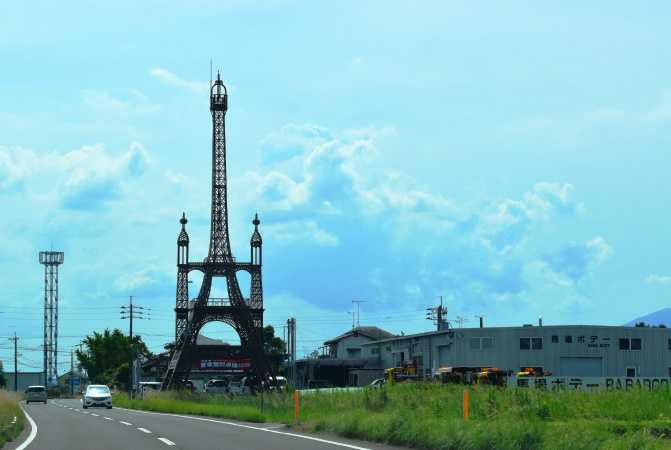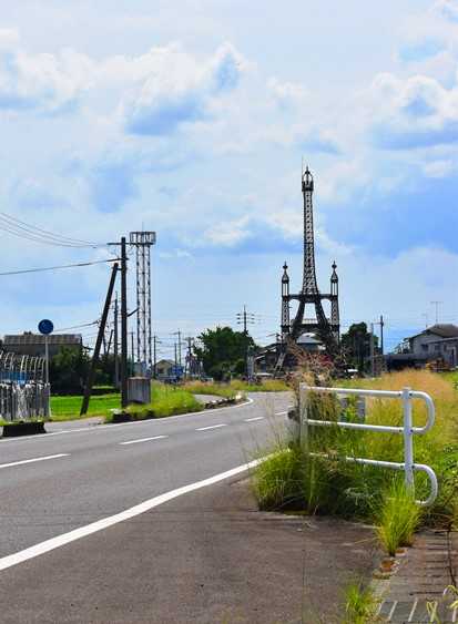田園風景に突如現れるエッフェル塔、パリやったんか。サイズだけでなく微妙に形も違う。両翼の小さな2塔。