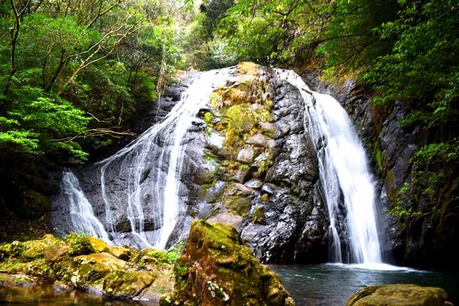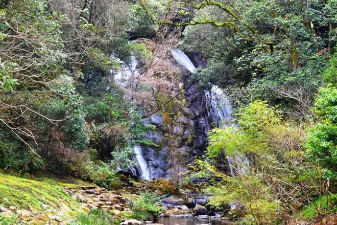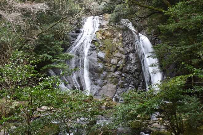 右側の流れが男滝、左側が女滝となっていまんねん。