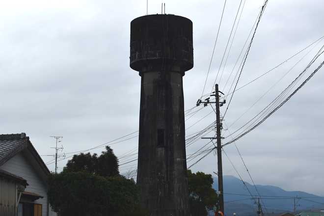 戦争遺産。落下傘部隊の給水塔。空挺落下傘部隊発祥の地。高さ27.3メートル、兵隊さんの生活用水を供給していた。米軍機の機銃掃射痕も残る。