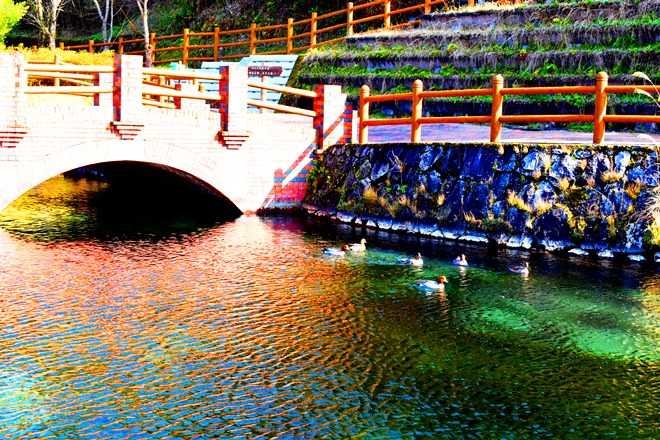 鹿児島県姶良郡湧水町木場にある湧水を堰き止めた池。名水100選。