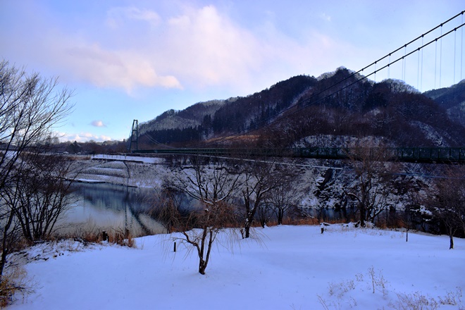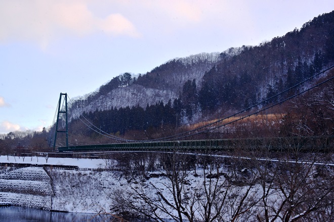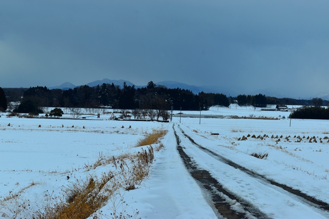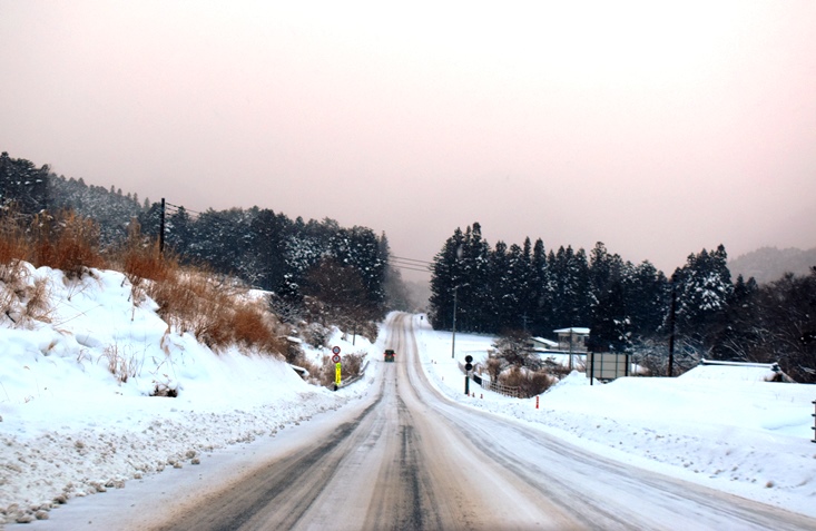 どんどん山奥に、車も減った、雪慣れしていない俺は不安で仕方ない。スタッドレスタイヤの威力を知らなかった。雪が音を消すので、慣れていないと怖くなる。次の目的地まで80キロ・・・。