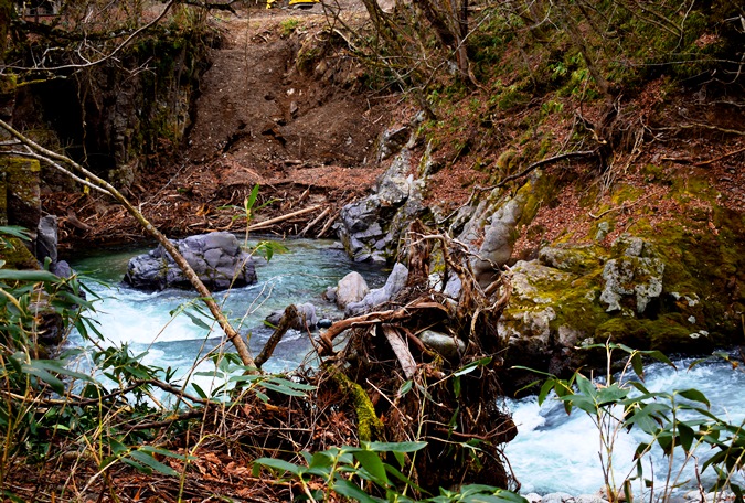 舗装道が終り、しかし、川は続く。