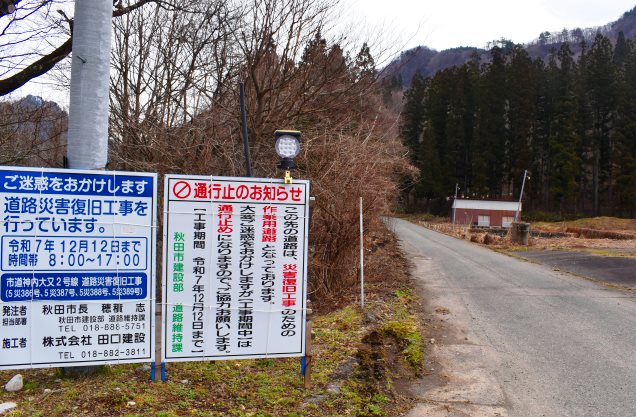 これって、通行止めになってんの?なってないの?まあ、目的地は1キロぐらいだから、歩いて行こうやないか、勇気を持って。