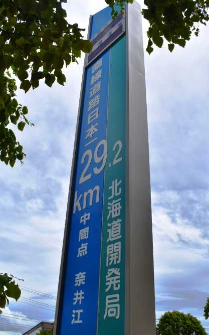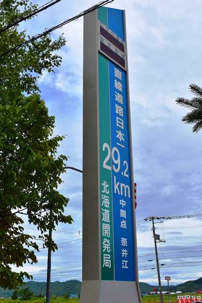 日本一の直線道路(起点美唄市、中間点奈良井市、反対側の起点滝川市)