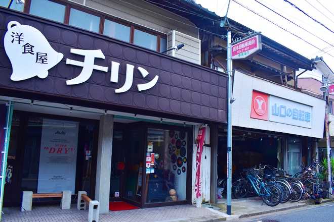 チリン、洋食屋?看板は自転車屋のほうではないか。