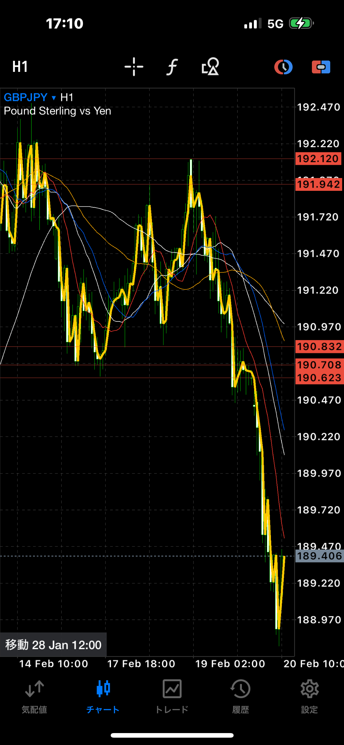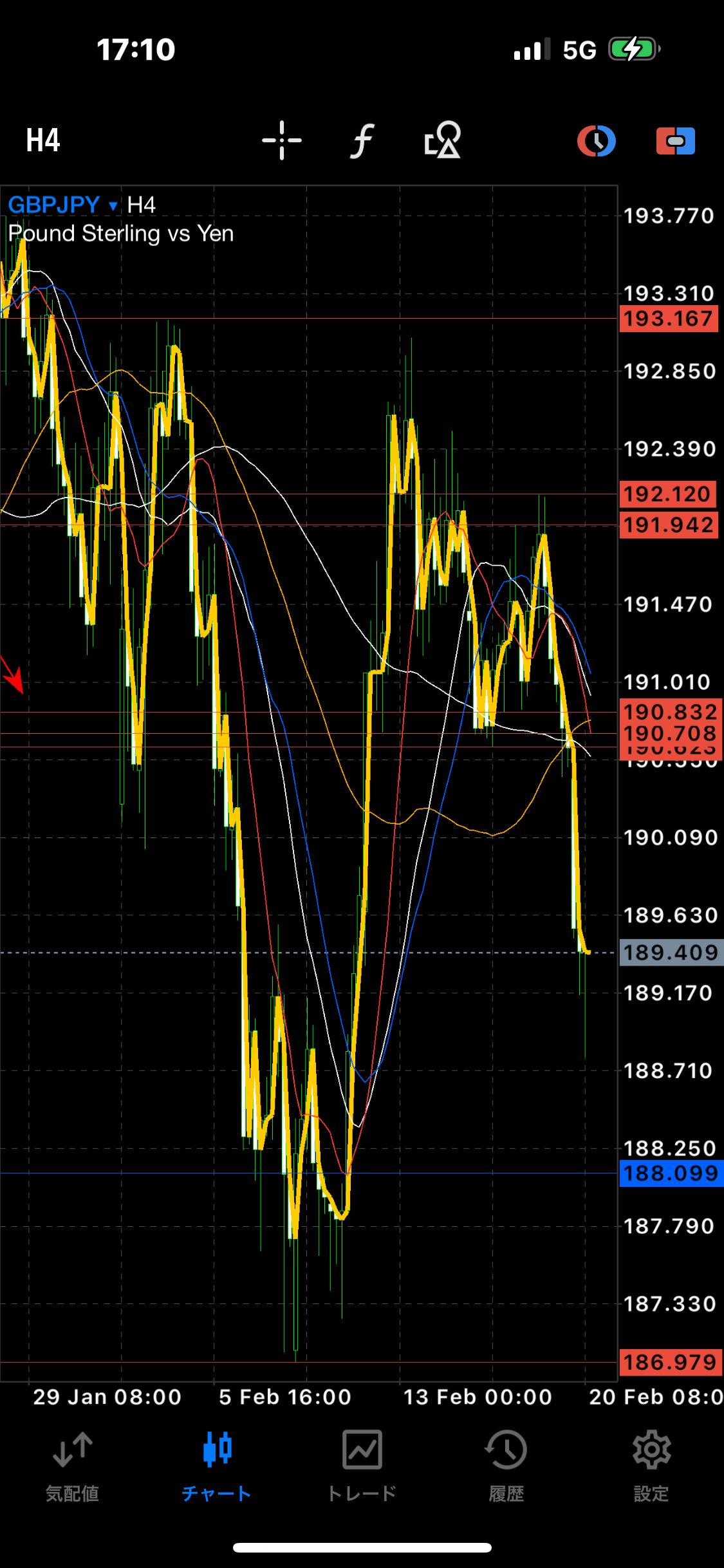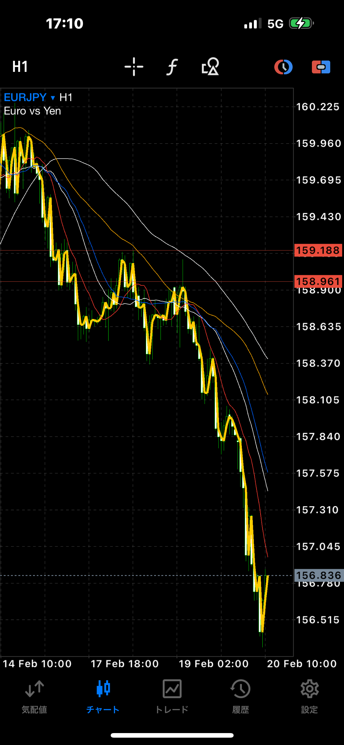 2月21の朝に確認したところ、5分足の中では、いい利確ポイントでした