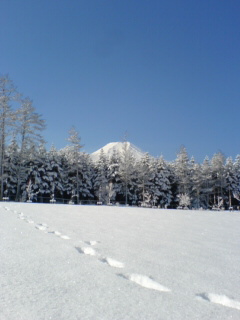真っ白な雪景色の中に、雄大な白い富士山が・・・。