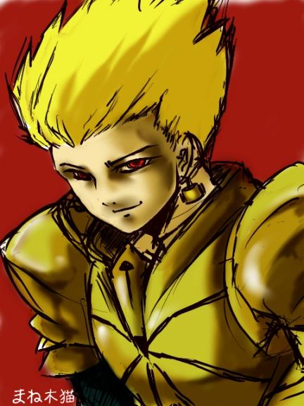 とりあえず、まね木猫です。 昨日に引き続きお絵かきリハビリ。ってか思うさま描きたかった人描いてしまった上にものすごい雑w なんだかこう言ってしまっていいのかどうか解りませんが、ものっごつい態度でっかくて大好きなんだな。英雄王。ディティール解らなーい、じゃ描くなよとか聞こえてきそうですが、だって描いてみたかったからしょうがないじゃんとか開き直る。っすっげーんですよ、この人。ゲート・オブ・バビロンとか痺れます。私服姿で前髪下してる時もイカスんですぜぃ。(注:わっちが描くとなんでかスーパーサイ〇人みたくなってしまうorz)