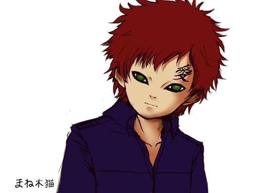 まね木猫です。 最後に描いたのはいつだったか。確かツアーに参加させていただいたのが最後だったかな。あれからいろんなこと、入院とかホントにいろんなことがあったから、全然描いてなかったんだなぁ。私もともとがアレな絵だけれども、描いてないとドンドンと描けなくなってくる人なので、ちょっと心配しておりました。せめて前みたく描けるように戻れるといいんだけど。とりあえず今回からリハビリのように少しずつ感覚をとりもどしたいな。でも描きはじめたらホント夢中になってたw時間経つの早いなー、絵を描いてると。楽しいって感覚だけはすぐに取り戻せた。 やっぱり最初はこの方にしました。我愛羅様、五代目風影様です。細かいとこまでは描けなかったけど、まぁ少しずつ少しずつ。目の色とか合ってたっけ?