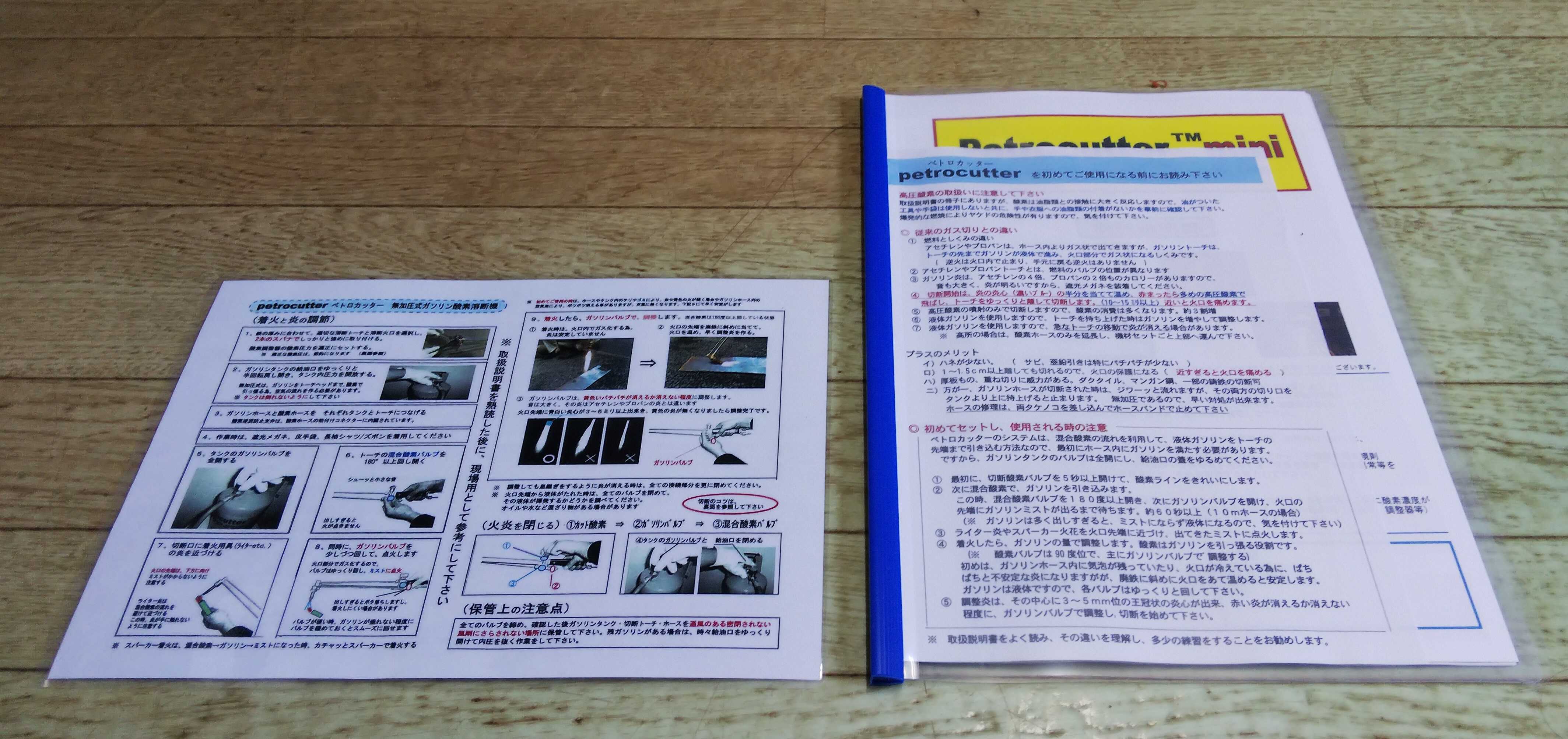 右が説明書で左はラミネート加工されてて付属の工具箱に入れて現場で見る用みたいです。
