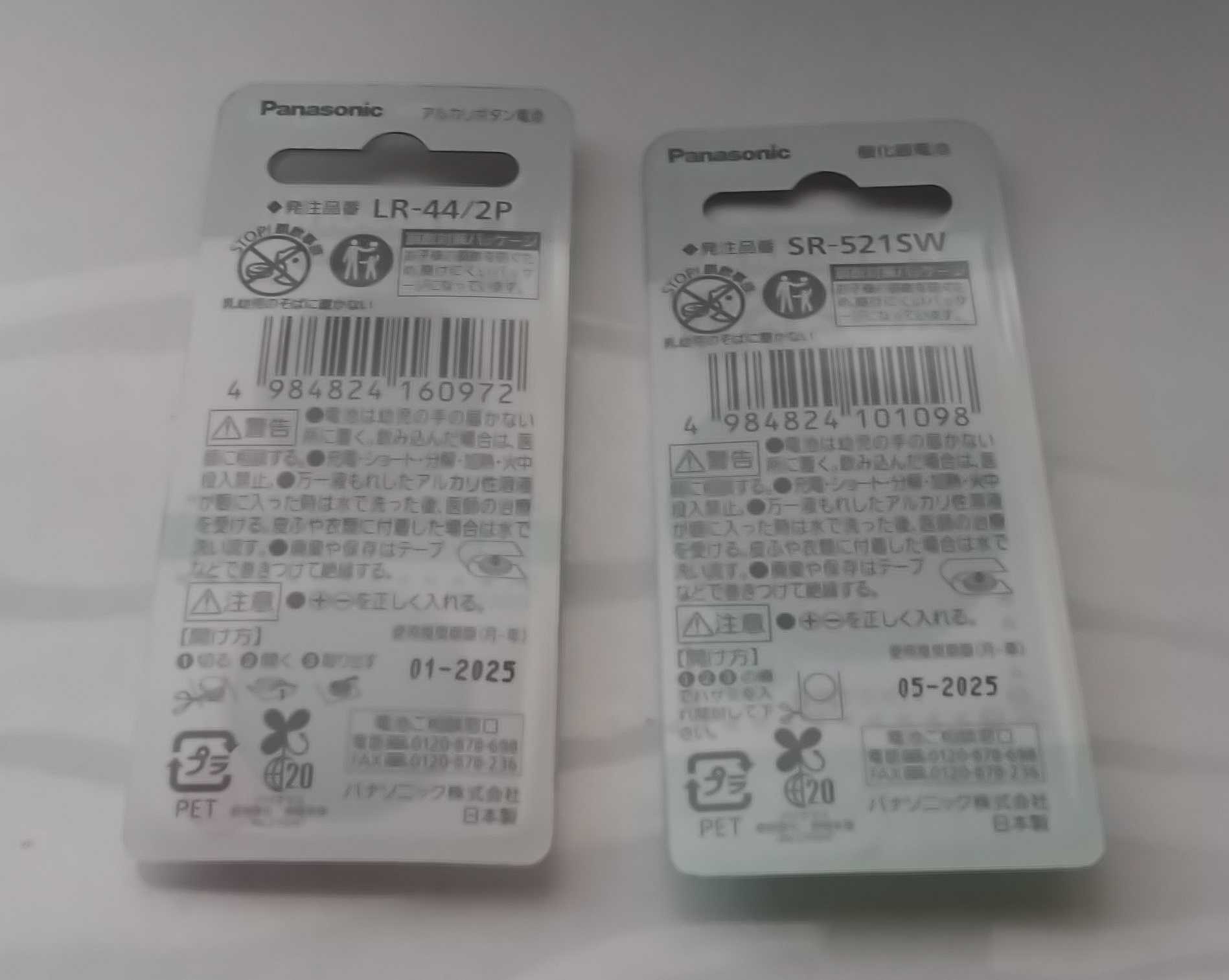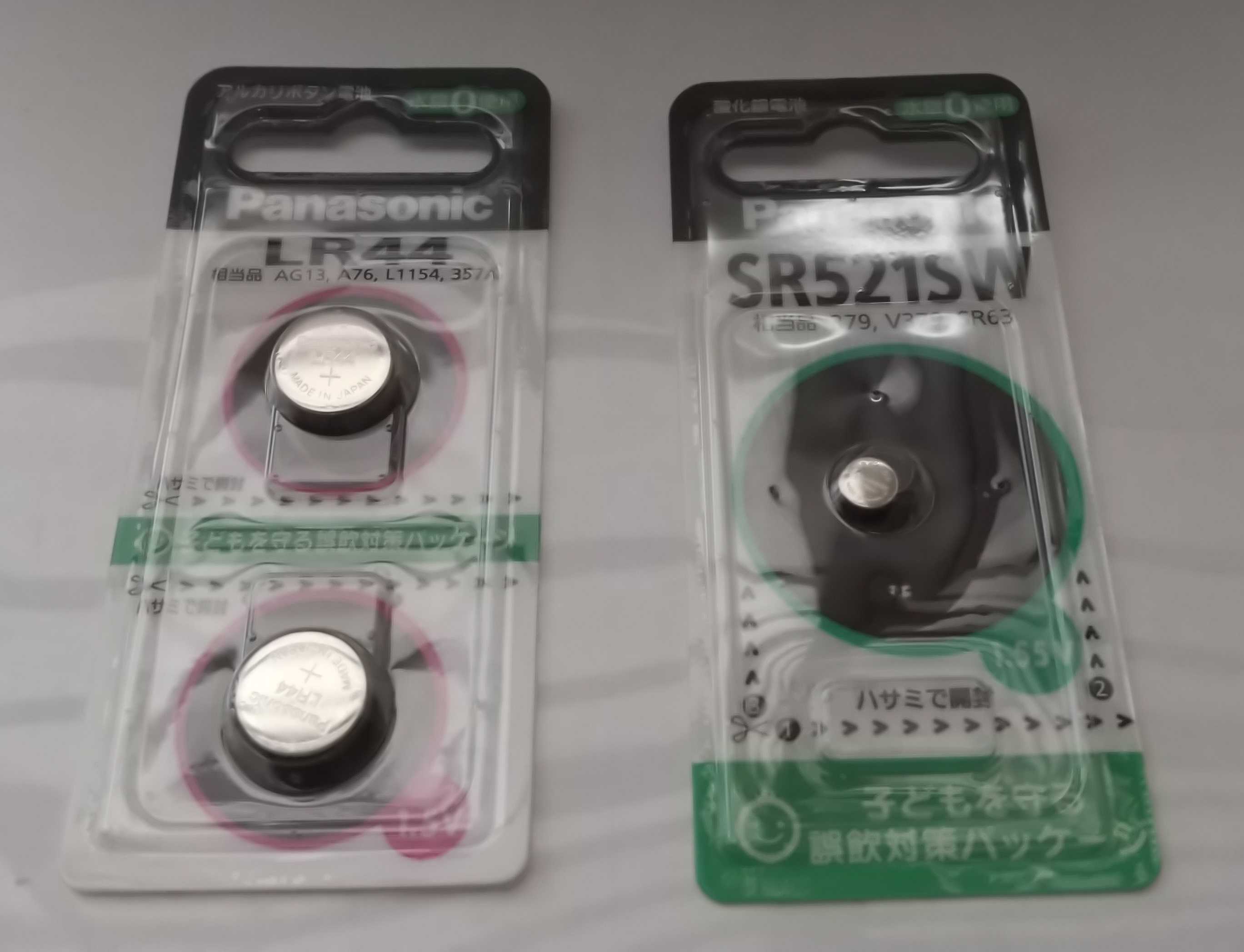SR521SWが時計用で左のLR44は、そろそろ買わないとと思っていた検電器用の電池をついでに