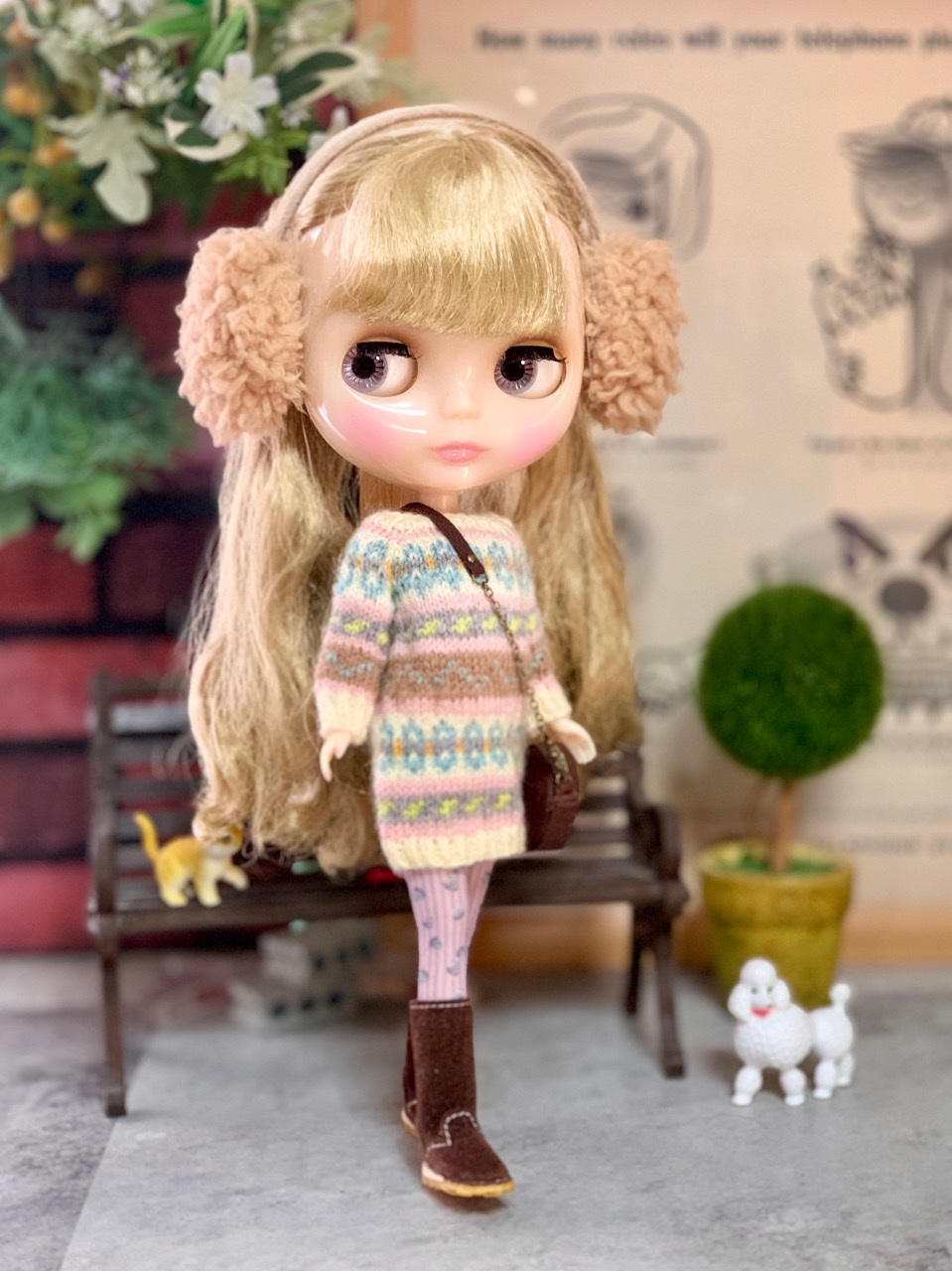 妄想です。ブラさんに行ってもらお〜。三つ編み可愛い。ボタン一個(ホットフィックス)が行方不明。かんたんドール・コーディネイト・レシピ お人形服作りの基本と応用 (Dolly・dolly books) [ 関口妙子 ]#ネオブライスアウトフィット#ネオブライス#neoblythe#ドールアウトフィット#ドール服#ペニープレシャス#ドールニット