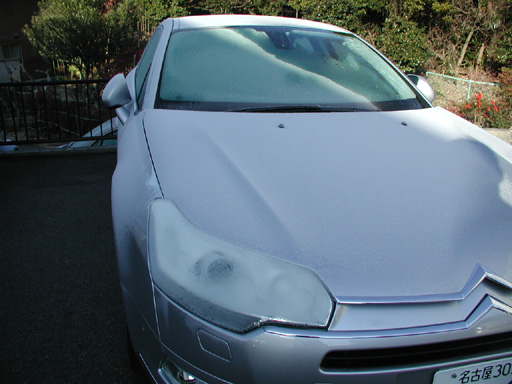冷え込む日が続いています。朝8時半頃のシトロエン天白の駐車場においてある試乗車はこんなふうに、なってました。フロントガラスだけではなく、ヘッドランプまで真っ白です。名古屋でこんな感じですので、寒い地方であればカンカンに凍ってますね。けどまだ雪が降りません。1回ぐらいは・・ドーンと降ると思うのですが。