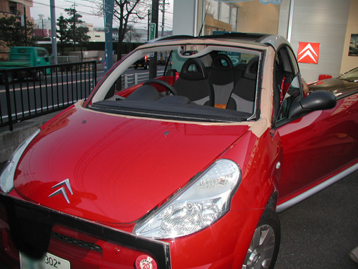 今日は久しぶりに、フロントガラス交換です。続くと週に2台ペースの時もありましたが最近はずっとなく、久しぶりの作業です。作業後もガラスを貼り付けた、接着剤が乾燥するまで動かせないので、本日はお預かりです。フロントガラスは交換したことがありせんがBXのクォーターガラスは、かなり前ですけど(キャブレター車は全滅でしたよ)何十台も交換したことがあります。けど、フロントガラスの方が大きくてはるかに難しそうですね。なので、ずっと横で見てるだけです。