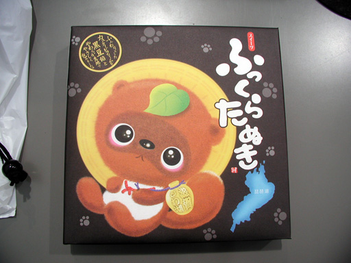 C4Picassoを購入していただいたSさんより京都へ帰ったので、と・・おみやげをいただきました。包装紙をみると琵琶湖? 信楽焼の関係なのか?とてもかわいい「たぬき」のまんじゅうです。頭の上にある、葉っぱがまたかわいくて取っておきたいまんじゅうでしたが、いただきました。ありがとうございました。