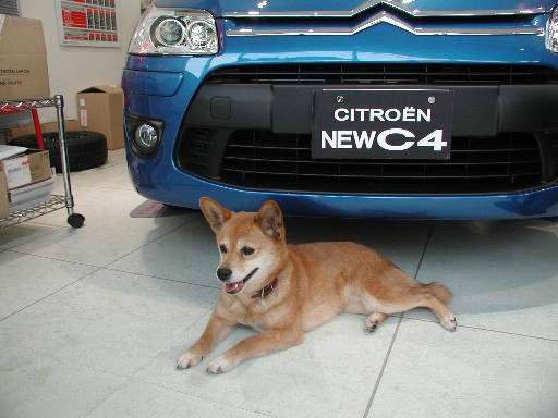新型C4がデビューして少し経ちますがそういえば・・まだ「さく」にお披露目してなかったのです。そこで、今日は暖かい日だし散歩の途中でショールームに寄って、新しいC4の前で休憩です。最初はフェイスリフトが気になるのか、何回も車の廻りを歩いていましたが、10分ぐらいで落ちつき正面にてポーズです。そして・・こそっと「早く新しいC4の試乗車にナンバーを付けて」と、言うのです。今月は今からが忙しいので、4月になってからねと言いきかせて、納得してくれた「さく」でした。