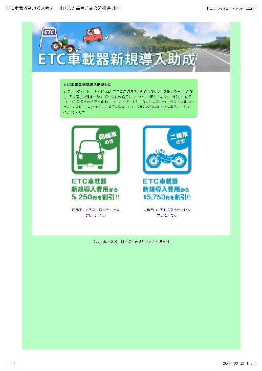 ずっと中断していた、ETC車載器新規導入助成システムが3月12日より始まります。ただ・・・3月31日で終了してしまうようですが。休日の高速道路が1000円にて乗り放題とうのも近々始まりますので、ETC車載器は必需品といっても良いかも知れませんね。シトロエン天白のサービス工場は、その場でセットアップ登録も行っていますので、1000円乗り放題?のためにもETCがまだ装着されてない車にお乗りの方はお問い合わせ下さい。2CVから新車まですべて、取付&セットアップ登録いたします。
