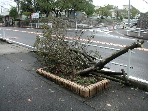 今朝5時頃は完全に暴風雨でした。このまま続くとすごいことになるぞと思いましたが7時前にはおさまり、葉っぱがたくさん落ちている道路を走って出社しました。会社に出てくると、街路樹は倒れているし傾きかけたフェンスもあるしで、強風だったんだなとわかります。学校が休みになったの原因なのか、いつもより空いてる道路でしたが電車はまだ止まったままです。水が来なくて良かったです。