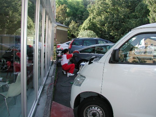 昼過ぎよりオートグリムコンプリートの実施1号をC6の試乗車にて加工してもらいました。完成したのは夕方5時過ぎにでしたが作業している方は、まったく休憩なしでずっと作業をやり続けていました。暑くも寒くもない気候なのでやりやすかったかとは思いますが、よく体力が続くなと感心です。暗くなってしまったので、明日の朝仕上がり状態を確認して、これからはお客様に「オートグリムコンプリート」を勧めたいと思います。