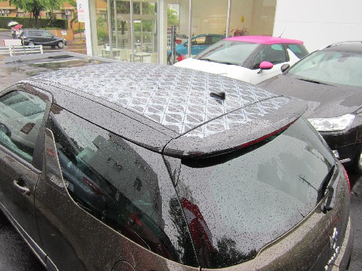 DS3ウルトラプレステージをショールームの中に入れました。今日の気温は昨日はまったく違い暑いです。エアコンが効いたショールームの中でゆっくりとウルトラプレステージを見てください。屋根の模様はこんな風です。