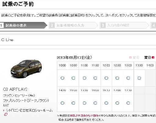 本日(先ほどからでしたが・・)よりWeb上にて試乗車の予約ができるようになりました。すごく先進的になったでしょ!シトロエン名古屋天白ではDS3のスポーツシックも用意してありますので、6速マニュアルターボの走りを楽しんでいただけます。試乗車のボディカラーもすべて記載してありますのでとてもわかりやすいと思います。今日の公式ページは「シトロエンDS3 スポーツ・シック・ウルトラ・プレステージ」です。